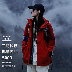 【朱雀红】Calanbula户外冲锋衣女款登山服三合一防风防