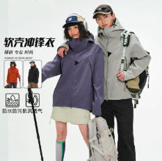 Calanbula软壳冲锋衣男女秋冬防风防水情侣夹克机能风露